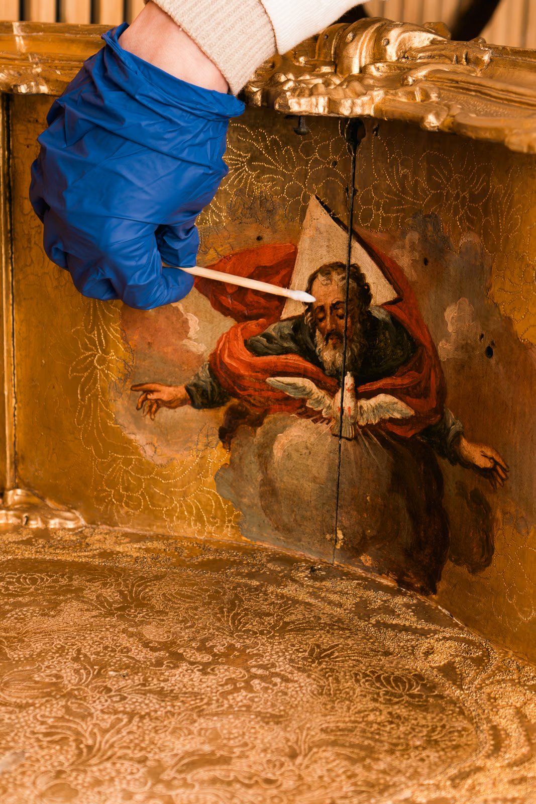 Limpeza controlada, estabilização e reintegração cromática de superfícies pictóricas.